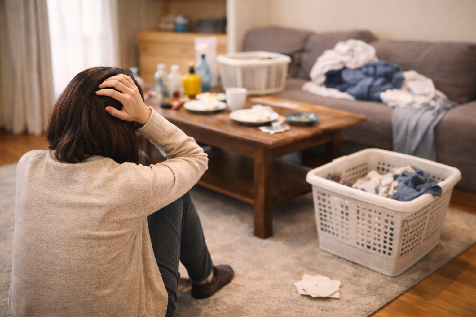 家族と暮らしていても、家事の多くを一人で引き受けていると、責任の重さが積み重なります。「自分がやらなければ回らない」という意識は、家事を義務に変えてしまい、気持ちの余白を奪います。その結果、家事そのものを避けたくなる状態に陥りやすくなります。