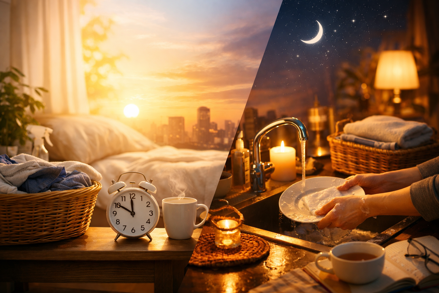 毎日の朝と夜の家事をスムーズに進めるには、ちょっとした「準備」と「仕組み」を作っておくことが大切です。家事の負担を減らそうと考えると、つい大掛かりな改善を考えがちですが、実際には小さな工夫の積み重ねで日々の暮らしはぐっと快適になります。ポイントは、朝と夜、それぞれのタイミングで自然に家事をこなせる環境を整えることです。