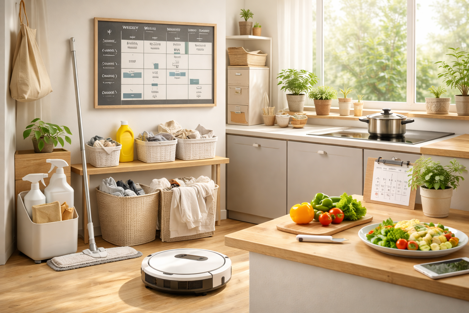 家事の負担を軽くするうえで、道具や仕組みを活用することは非常に効果的です。効率的な道具の使い方や作業の仕組みを整えることで、同じ家事でもかかる時間や手間が大きく変わります。ここでは、家事をスムーズに進めるための考え方や具体的な工夫を整理してみます。