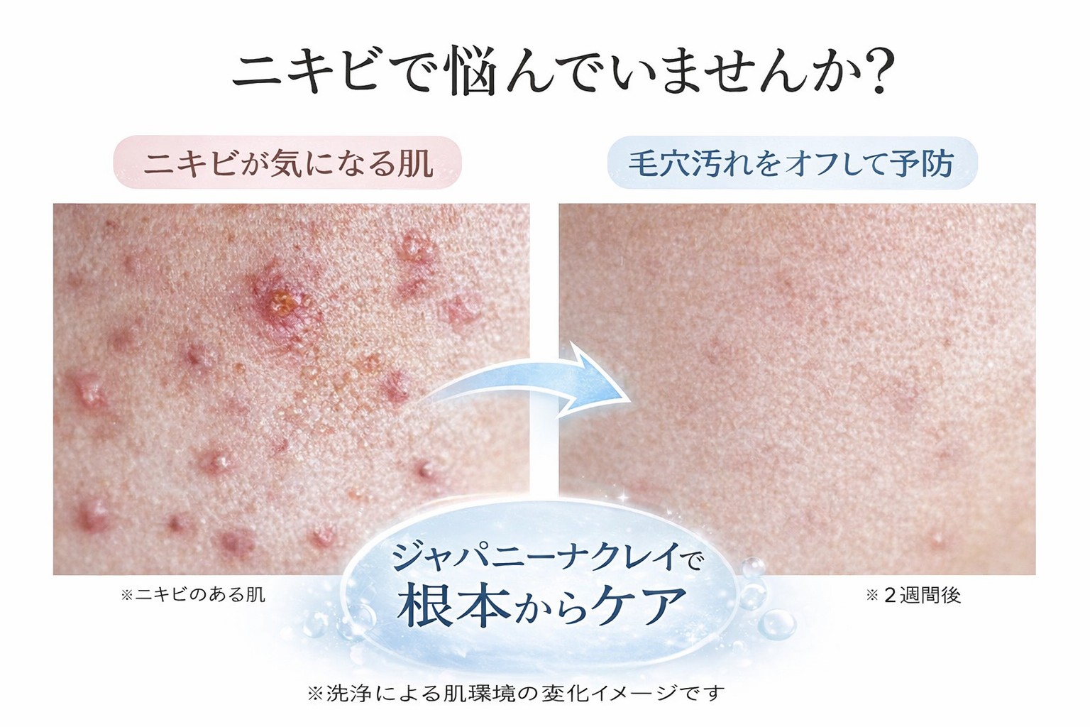 ニキビは、余分な皮脂や古い角質が毛穴に詰まり、肌環境が乱れることで起こりやすくなります。ジャパニーナクレイは、こうしたニキビの原因になりやすい毛穴詰まりや皮脂汚れをやさしく洗浄し、清潔な状態を保つサポートをしてくれます。さらに、ジェル状にして薄く塗る使い方もできるため、肌表面を保護しながら過ごしたいときにも使いやすいのが特長です。